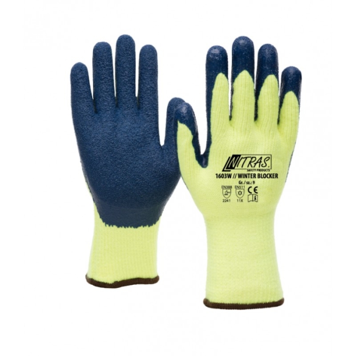 Qış əlcəkləri ovuc hissəsində teksturlu lateks örtürülmə.